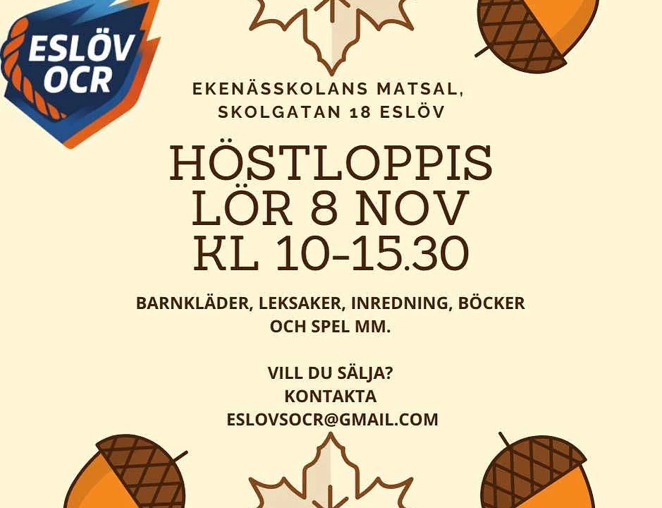 Du får chans att köpa kläder o barnartiklar samt andra prylar för en billig peng samtidigt som du stöttar Eslövs OCR förening. 10% av försäljningen går till föreningen! Köp kaffe o kaka medan du funderar på dina köp!