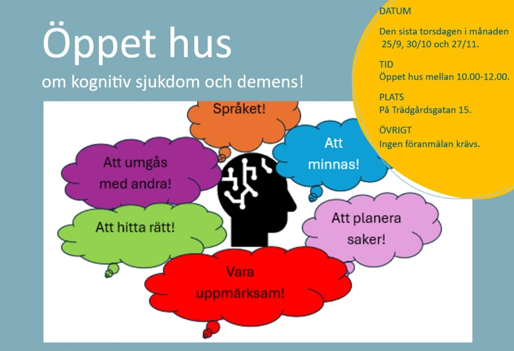 Har du frågor eller tankar kring demenssjukdomar/kognitiva sjukdomar? Finns någon i din närhet som du misstänker har en demenssjukdom eller…