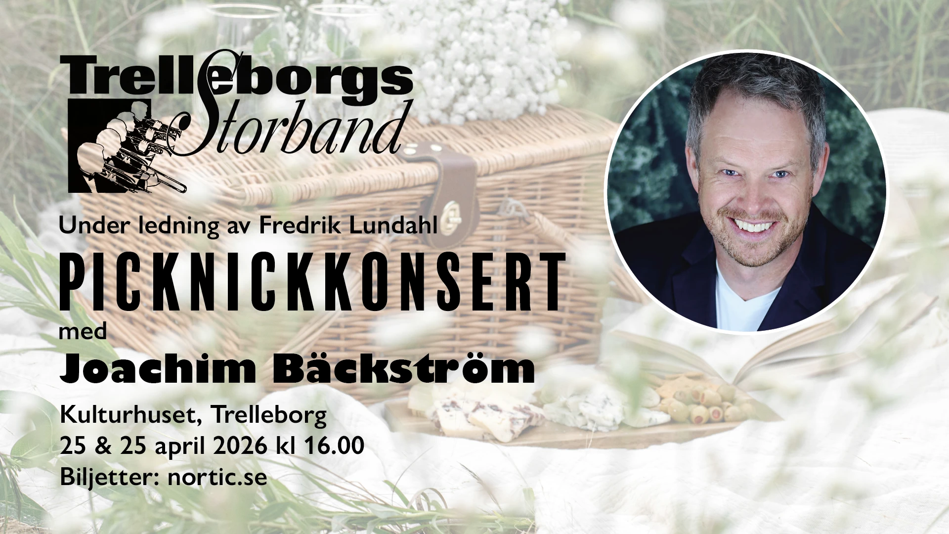Picknickkonsert med Joachim Bäckström och Trelleborgs Storband under ledning av Fredrik Lundahl. Ta gärna med dig egen mat och dryck!…