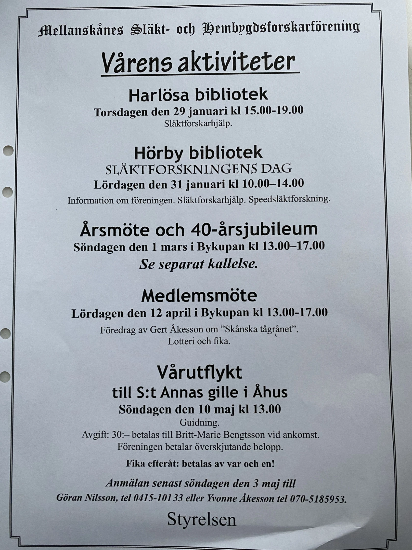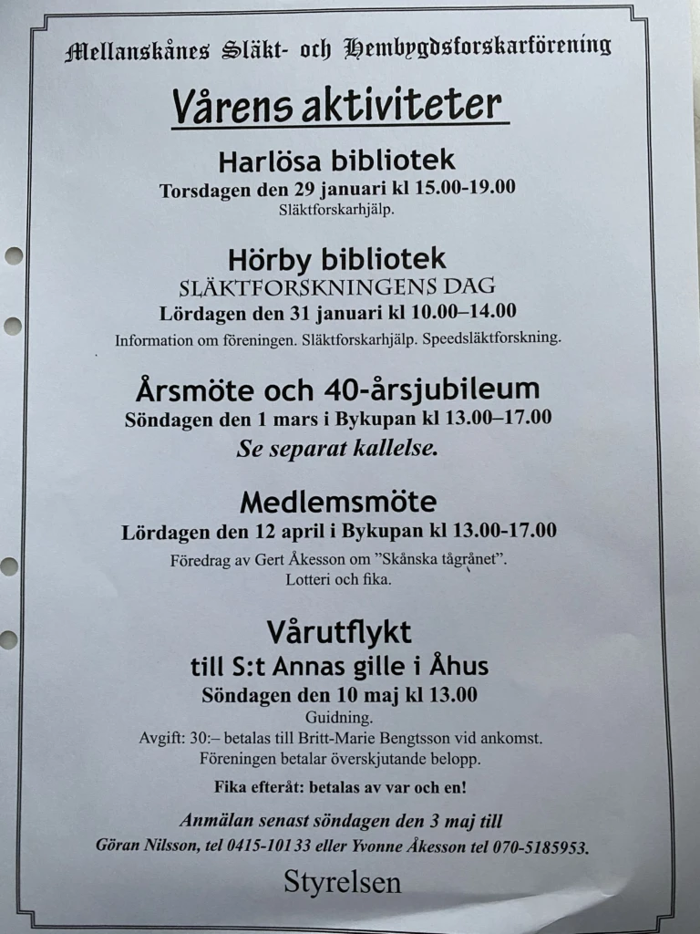 Föredrag av Gert Åkesson ”Skånska tågrånet”. Fika och lotteri