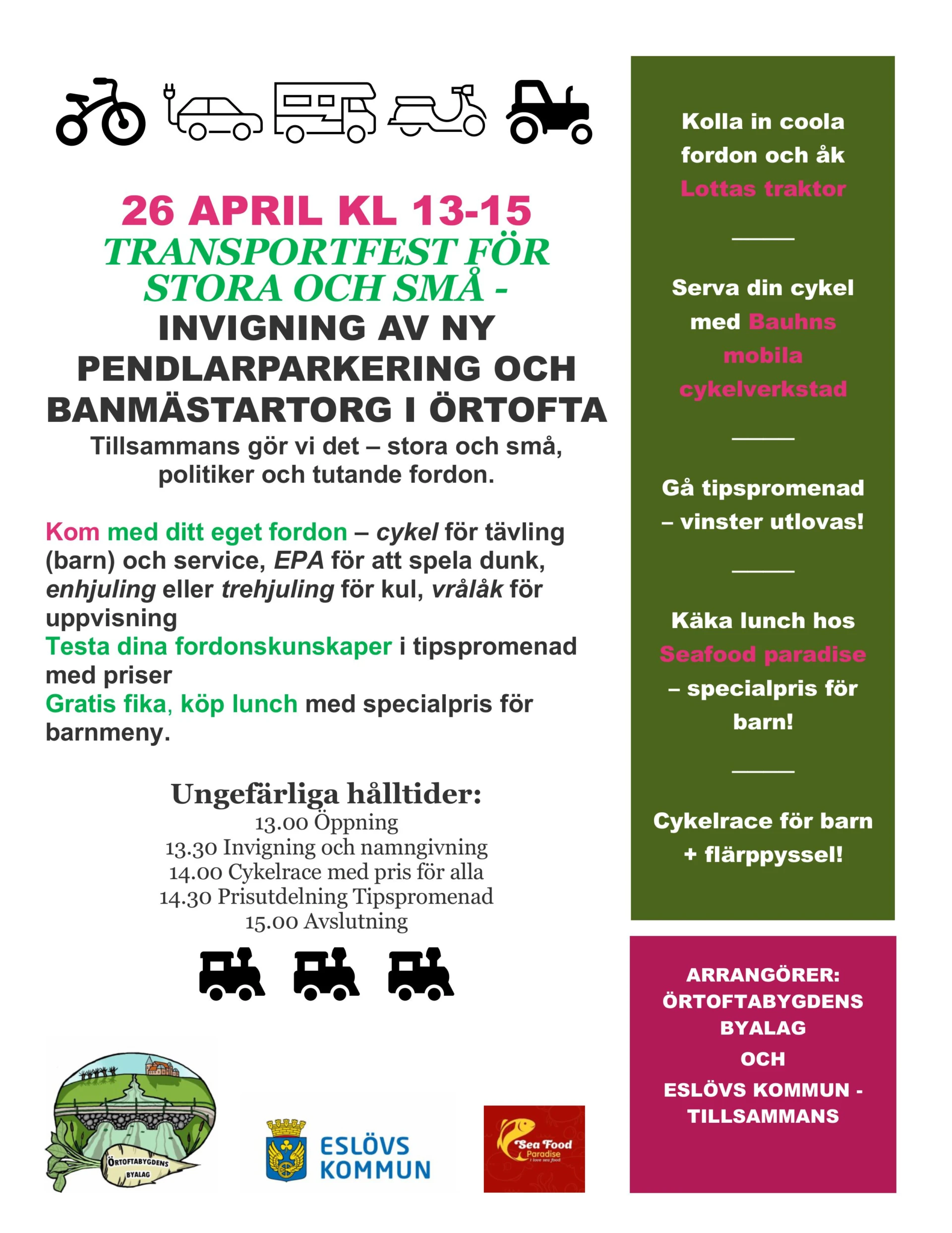 Transportfest för stora och små! Med din hjälp fyller vi parkeringen med spännande fordon och tillsammans tutar vi under invigningen…
