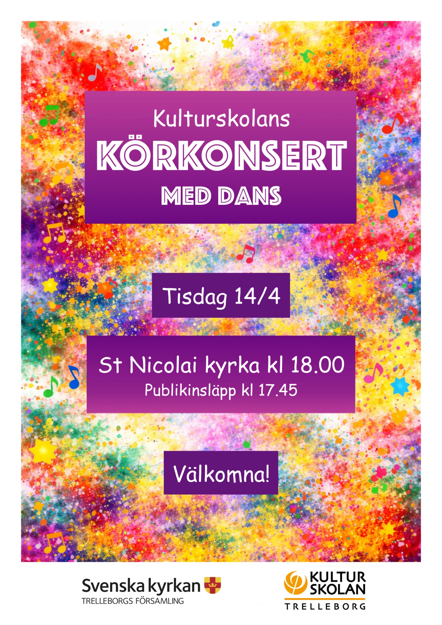 Kulturskolans körer och danselever bjuder in till konsert i S:t Nicolai Kyrka tisdagen den 14 april klockan 18.00. Dörrarna öppnas…