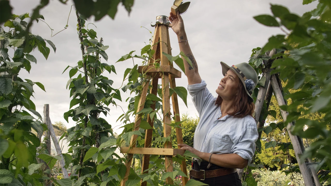 Tillsammans med trädgårdsmästaren, programledaren och trädgårdsdesignern Linnéa Dickson får du lära dig att snickra ett växttorn. Det är ett praktiskt och dekorativt stöd för klättrande växter som bönor, rosor eller blomma för dagen.